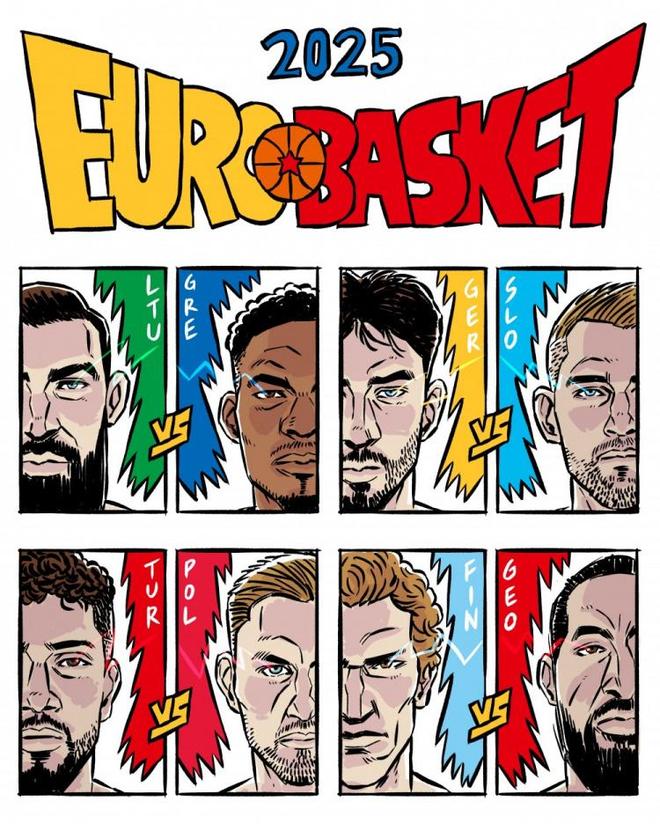 欧锦赛官推晒8强对阵海报:字母哥东契奇申京马尔卡宁入镜