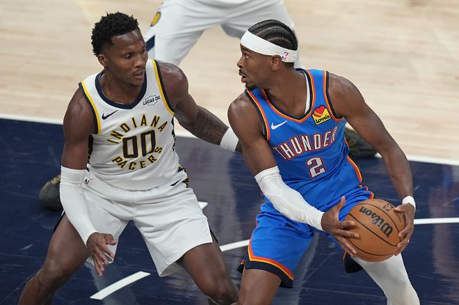 北京时间10月24日,NBA常规赛卫冕冠军雷霆客场对阵步行者,双方迎来上赛季总决赛后的首次交锋,哈利伯顿因伤缺席。雷霆成为历史首支前两场均双加时球队,雷霆上半场领先步行者7分,内姆哈德左肩酸痛提前退赛,步行者顽强反扑追平,亚历山大常规时间错失绝杀三分,首个加时赛亚历山大再次错失绝杀。第二个加时赛马瑟林6犯毕业,亚历山大成为本赛季首位单场50+球员,且创造生涯单场得分新高纪录,亚历山大与维金斯连续得分取得领先,最终雷霆141-135双加时战胜步行者收获2连胜,步行者遭遇新赛季开门黑。